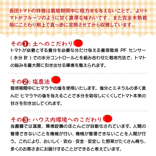 大量生産できないまさに幻のミニトマト。この機会にぜひ!!長田農園が自信を持ってお届けします。