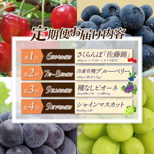 【先行予約】【数量限定】新鮮フルーツの定期便 年4回お届け(さくらんぼ佐藤錦、冷凍ブルーベリー、ピオーネ、シャインマスカット)