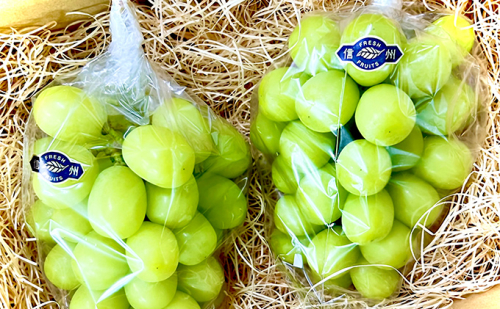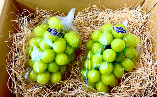 【配送不可:離島】 長野県長野市川中島平で育ったシャインマスカットです。 2房詰での発送になります。 ご注文心よりお待ちしております。