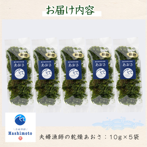 夫婦漁師の乾燥あおさ(10g×5袋)【夫婦漁師Hashimoto】fuufu-7036 610046 - 鹿児島県長島町