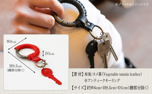 カラー:ヌメ革・レッド素材:本体/ヌメ革(Vegetable tannin leather)※アンティークキーリングサイズ:約W6cm×H9.5cm×D1cm(鍵部分除く)