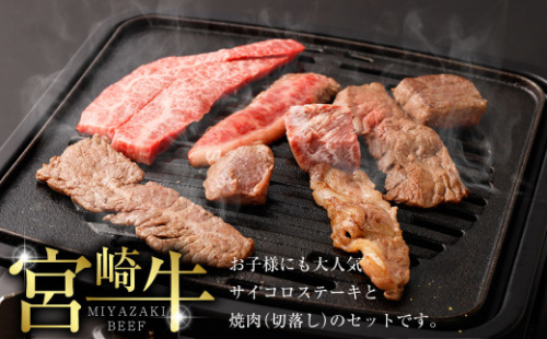 《宮崎牛》お子様にも大人気サイコロステーキと焼肉(切落し)のセットです。サイコロステーキは赤身肉のモモ肉を使用。