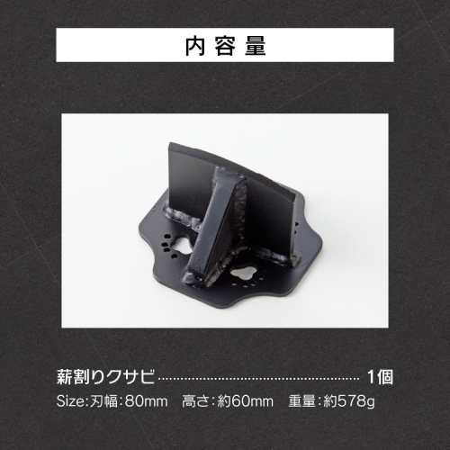 ・[ソロキャンプで薪を簡単に割れるクサビ] 地面に置き、クサビの上に薪を支えて持ち、ハンマーで叩くことで簡単に薪が割れます。 独自のR形状のデザインの刃先で薪が割り易くなっています。また、10x10cmサイズの土台で薪を割ってもクサビが転びにくい工夫を施しました。若干重量はありますが、割りやすさ、強度、土台の安定さのバランスを考慮し、デザインしました。