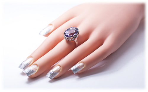 アジサイの花を思わせる淡い紫色の大粒アメジストが、あなたの指先を華麗に演出してくれる逸品です。