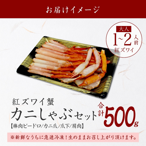 3214. 紅ズワイ 蟹しゃぶ ビードロ 500g 生食 紅ずわい カニしゃぶ かにしゃぶ 蟹 カニ ハーフポーション しゃぶしゃぶ 鍋 海鮮 カット済 送料無料 北海道 弟子屈町