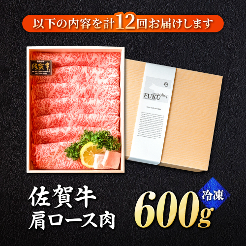 - 【全12回定期便】<しゃぶしゃぶ・贈り物に>佐賀牛肩ロース スライス 600g 吉野ヶ里町 /meat shop FUKU A5等級 黒毛和牛 ブランド和牛 佐賀県産 国産 [FCX022]