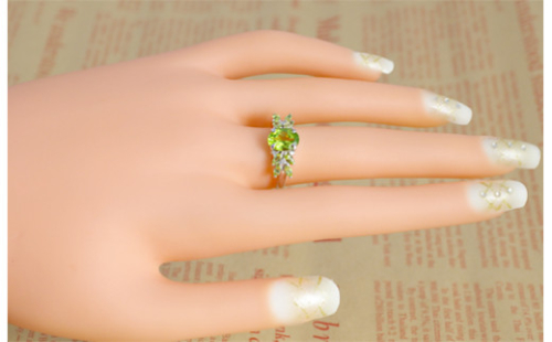 透明感のあるペリドットの優しいオリーブグリーンが穏やかな気持ちにさせてくれ癒してくれるリングです。