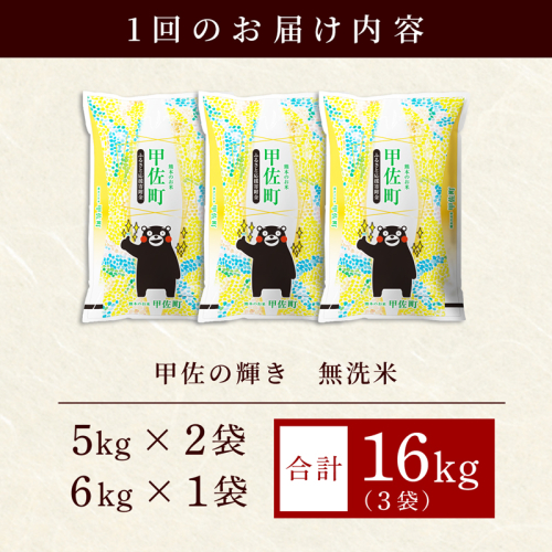『甲佐の輝き』無洗米16kg(5kg×2袋、6kg×1袋)【12ヶ月定期便】
