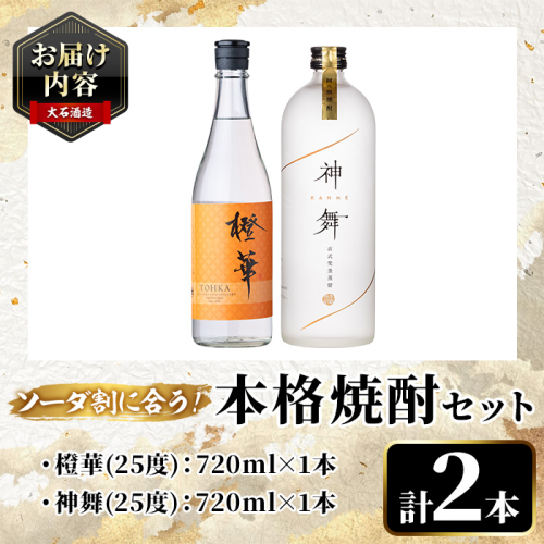 鹿児島本格芋焼酎「橙華・神舞」(計2本・各720ml)国産 焼酎 いも焼酎 お酒 アルコール ソーダ割【大石酒造】akn038-15