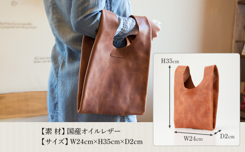 コニー( 金具を使わないハンドバッグ )( オイルレザー・キャメル )  BK093 622569 - 福岡県大木町