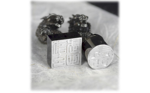 - 印鑑 龍モチーフ 角印 SV925 ブラックダイヤモンド〔工芸品〕stamp-003 [山梨 印鑑 ハンコ はんこ 宝石 ブラックダイヤモンド]