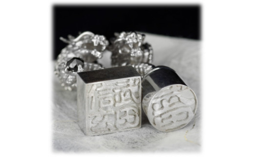 印鑑 龍モチーフ 角印 SV925 ブラックダイヤモンド〔工芸品〕stamp-002 [山梨 印鑑 ハンコ はんこ 宝石 ブラックダイヤモンド]