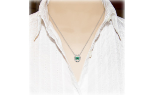 鮮やかなグリーンのエメラルドが際立つペンダント。