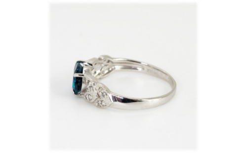 ロンドンブルートパーズの深みのある青が、ホワイトゴールドの台座でとても良く映え手元を輝かせます。