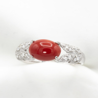 横置きにした0.4カラットの透明感のあるオパールが、リーフに留められたダイヤモンドで両側から優しく支えられているようなデザインです。