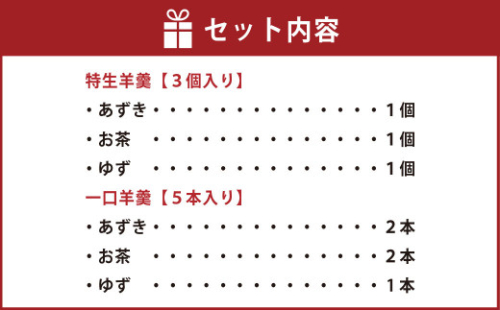 • <特生羊羹3個、一口羊羹5本セット>※入金確認後、翌月末迄に順次出荷します。 和菓子 お茶 あずき 小豆