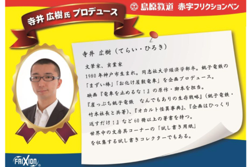 なお、本企画は銚子電鉄の「まずい棒」「お化け屋敷電車」などを企画プロデュースする、寺井広樹氏のプロデュース企画となります。