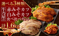 <選べる3種類!牛乃屋の赤みそカツ白みそカツ食べ比べセット 計1.6kg >※入金確認後、2ヶ月以内に順次出荷します。 食べ比べ セット カツ 味噌 みそ