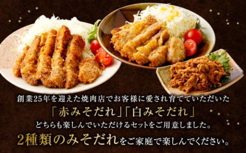 創業25年を迎えた焼肉店でお客様に愛され育てていただいた「赤みそだれ」「白みそだれ」どちらも楽しんでいただけるセットをご用意しました。