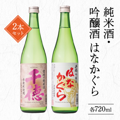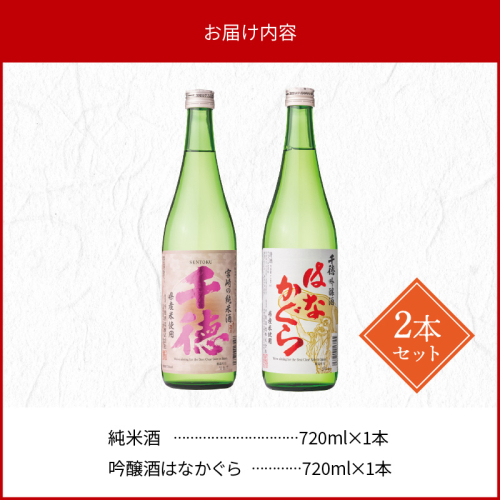 創業明治36年。宮崎県唯一の清酒専門蔵 千徳が醸す、宮崎県産「山田錦」が原料の穏やかな香りとすっきりとした味の「純米酒」と、宮崎県酒造好適米「はなかぐら」が原料の淡麗辛口のすっきりとしたキレのある「吟醸酒はなかぐら」のセットになります。 【原材料】 ・純米酒 宮崎県産「山田錦」 アルコール度数:15.5度 精米歩合:60% ・吟醸酒はなかぐら 宮崎県酒造好適米「はなかぐら」 アルコール度数:15度 精米歩合:60% 【地場産品基準】 3号:市内事業者が自社で醸造、(精米・蒸米、麹、段仕込み、もろみ造り)梱包までを行った日本酒であり、相応の付加価値が付与されているため