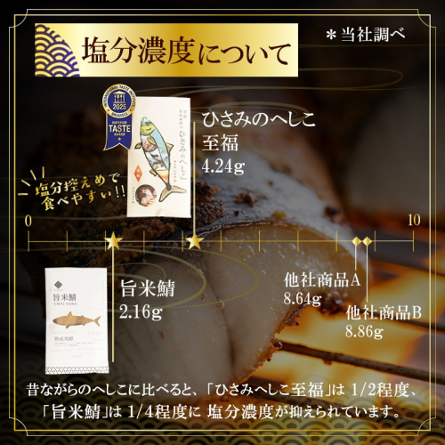 へしこの『概念』を変えてみませんか。 ひさみの「浅漬けへしこ」は時間を惜しまず、脂ののった鯖だけを厳選してじっくり米糠に漬け込み、熟成させて旨みを最大限に引き出しています。塩分控えめで浅く漬け込んだ、優しいまろやかな味わいが特徴です。 一つ一つ手作業で漬け込み、従来のへしこに比べて、それほど塩辛くないこだわりの「浅漬けへしこ」に仕上げました。 ■ひさみのへしこ【至福】 - へしこの概念が変わる、へしこの浅漬け。ご飯のお供やお酒のあてにピッタリの程よく塩分が効いたへしこは、お子様からお年寄りまで召し上がっていただいております。焼き魚やおにぎりの具にしたり、パスタと合わせたりと様々なアレンジ料理が楽しめます。 加工業者:株式会社SEACRAFT 【地場産品類型】3 【類型該当理由】区域内の事業所において、製造の全工程を行うことにより、相応の付加価値が生じているもの