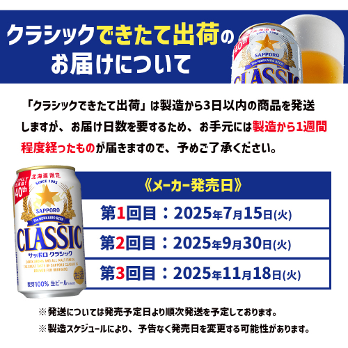 サッポロビール サッポロ ビール クラシック サッポロクラシック 350ml 350 24本 北海道限定 できたて出荷 できたて 生ビール 晩酌 おつまみ 晩餐 お酒 酒 麦芽 北海道工場 北海道 ふるさと納税 恵庭市 恵庭