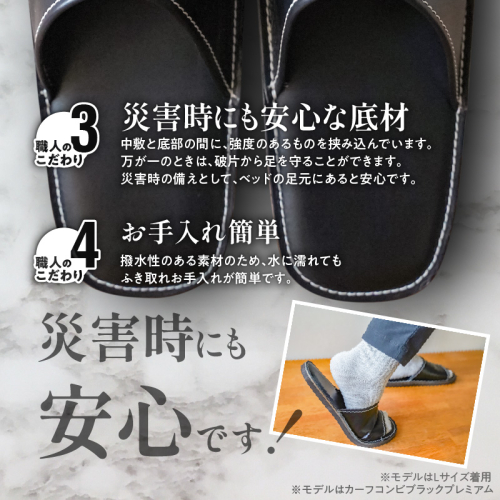 【カーフコンビ】靴職人手作りの本革「プレミアムスリッパ」 ブラック (L・2L) ルームシューズ 部屋履き 雑貨 日用品 革 本革 高級 ギフト プレゼント 贈答 カーフ 子牛 希少 黒 災害 H066-056