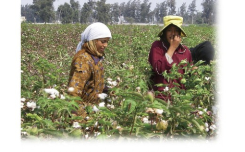 写真はワタセが使用しているエジプト綿花の収穫風景です。(株)クラボウが栽培委託契約で輸入し、湿度・温度管理された倉庫の原綿を、ワタセは特別に仕入れております。