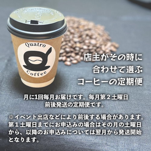 店主がその時に合わせて選ぶコーヒー豆。スペシャルティや AA、 grade1の中から選んでお届けします。