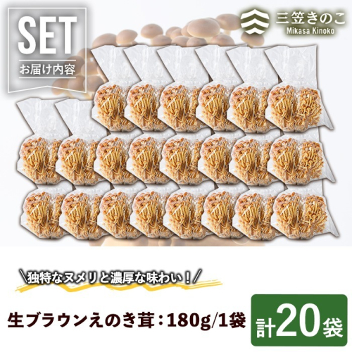 生ブラウンえのき茸(20袋・計3.6kg)国産 エノキ きのこ 茸 キノコ 個包装【三笠えのき茸生産組合】akn010-09