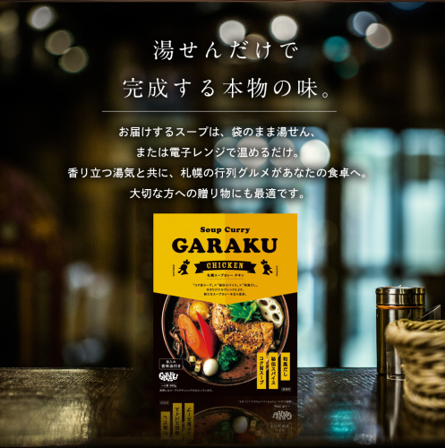 「スープカレーと和風ダシの融合」人気店GARAKU の味をご家庭でお愉しみください。