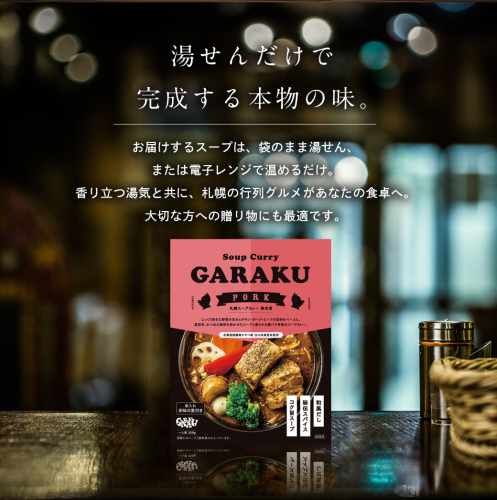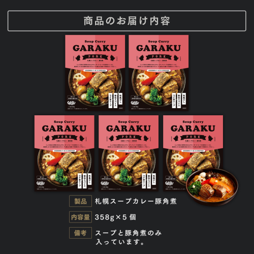 • 【北海道で大行列のできる人気スープカレー店】GARAKU札幌スープカレー豚角煮5個セット en01-00033