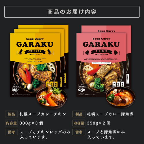 - 【北海道で大行列のできる人気スープカレー店】GARAKU札幌スープカレー2種食べ比べ5個セット en01-00034