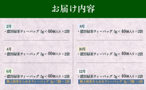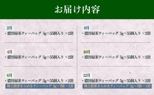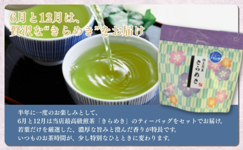 なお、6月と12月は当店最高級煎茶きらめきのティーバッグも合わせてお送りします。