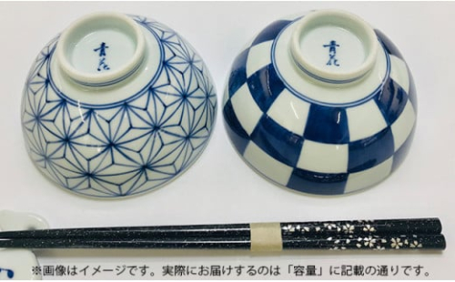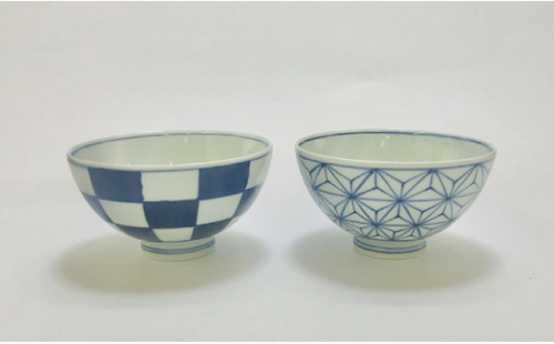 市松と麻の葉は、昔から描かれているおめでたい絵柄です。 大きさは、3.8寸で普通サイズで、お子様から大人の方まで人気があります。 形も持ちやすく丈夫です。 ※箸置きと箸はセットに含まれません。 窯元:しん窯 提供:株式会社小島芳栄堂