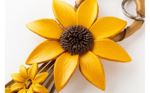 鞄に付けるだけで華やかになる革のバッグチャームです。