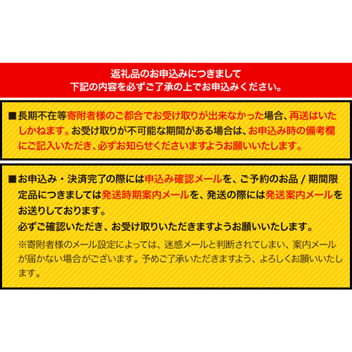 提供元の都合などにより、掲載中に予告なく返礼品の仕様(規格、容量、パッケージ、原材料など)が変更される場合がございます。お届けした返礼品のパッケージやラベルに記載されている注意書きなどをご確認ください。