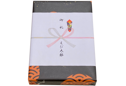 お中元、お歳暮、お年賀など時候のギフトやお祝、お礼といった日常にあふれた贈り物に最適な海老せんべい詰合せ。黒とオレンジを基調とした高級感あふれる包装紙が“最高のえびせんべい”を引き立たせます。ワンランク上の贈り物にぜひご利用ください。
