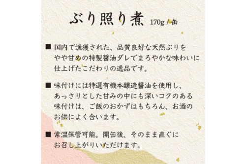 - 缶詰 国産 ぶり照り煮 170g×24缶 [気仙沼市物産振興協会 宮城県 気仙沼市 20565803] 魚 魚介類 鰤 ぶり ブリ 煮魚 缶詰 惣菜 つまみ 長期保存 保存食