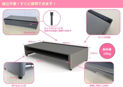 机上ラック(600mm)とモニタースタンドのセット商品になります。