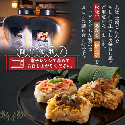 - 鄙茅(ひなかや)の彩りおこわ 土鍋ごはん ごはん ご飯 おこわ おにぎり おむすび お米 もち米 和食 ミシュラ おこわ詰合せ 松阪牛 あなご 桜えび 詰め合わせ 小分け 簡単調理 個包装 名物 三重県 多気町 US-08