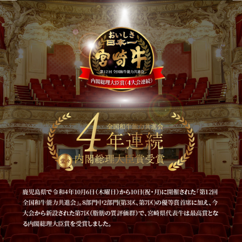 和牛のオリンピック「全国和牛能力共進会」において4大会連続「内閣総理大臣賞」を受賞した【宮崎牛】