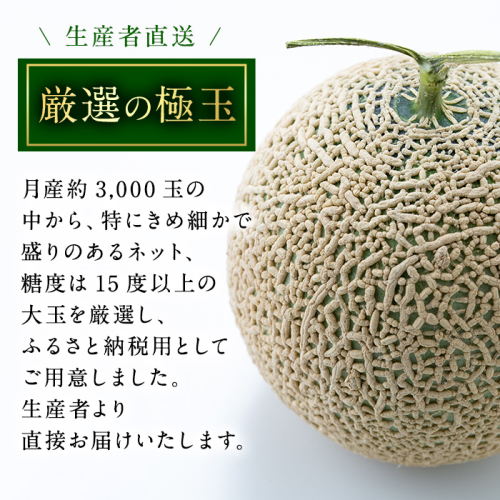 マル福園芸組合より、きめ細かで盛りのあるネット、糖度15度以上のメロンを厳選し、ふるさと納税の返礼品としてご用意しました(生産者直送)