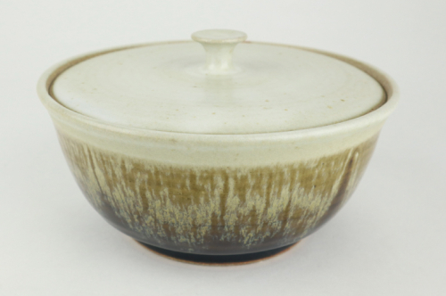 益子焼伝統工芸士である大塚雅淑の作品です。お菓子入れにしたり、冷ご飯を入れて電子レンジにも使えます。