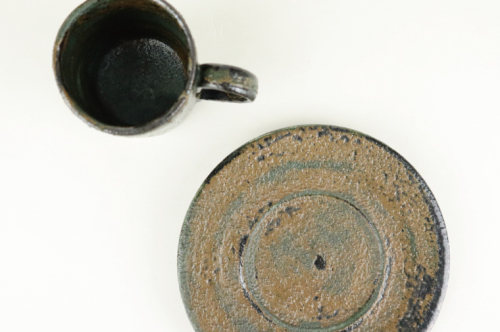 AT002 益子焼 大塚雅淑 デミタスカップ&ソーサー2組