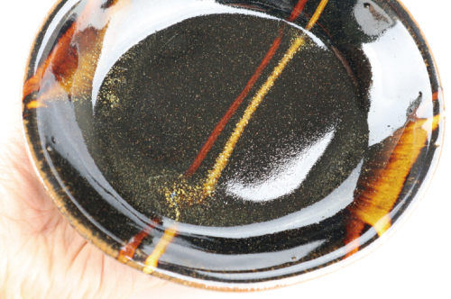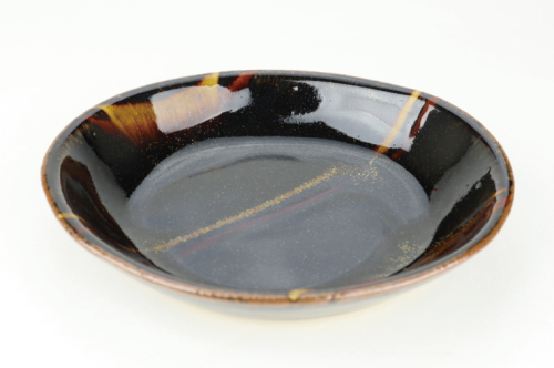 • AT007 益子焼 萩原芳典 黒釉線紋楕円皿(小)セット