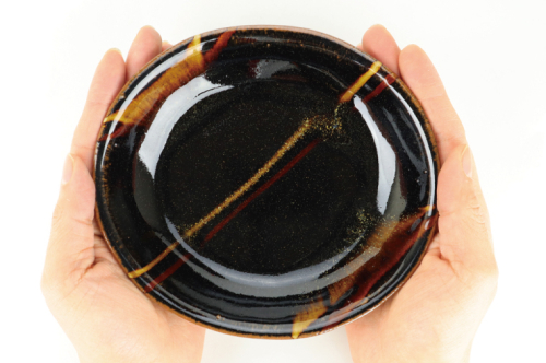 AT007 益子焼 萩原芳典 黒釉線紋楕円皿(小)セット