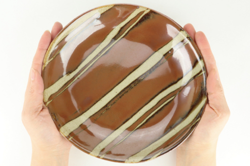AT009 益子焼 萩原芳典 柿釉線紋楕円皿セット 675729 - 栃木県益子町