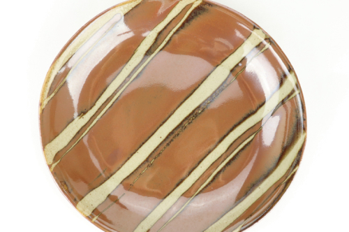 • AT009 益子焼 萩原芳典 柿釉線紋楕円皿セット