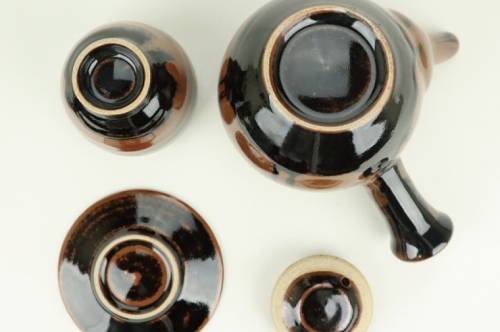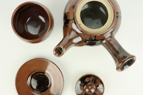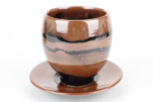 AT012 益子焼 萩原芳典 柿釉線紋茶器セット